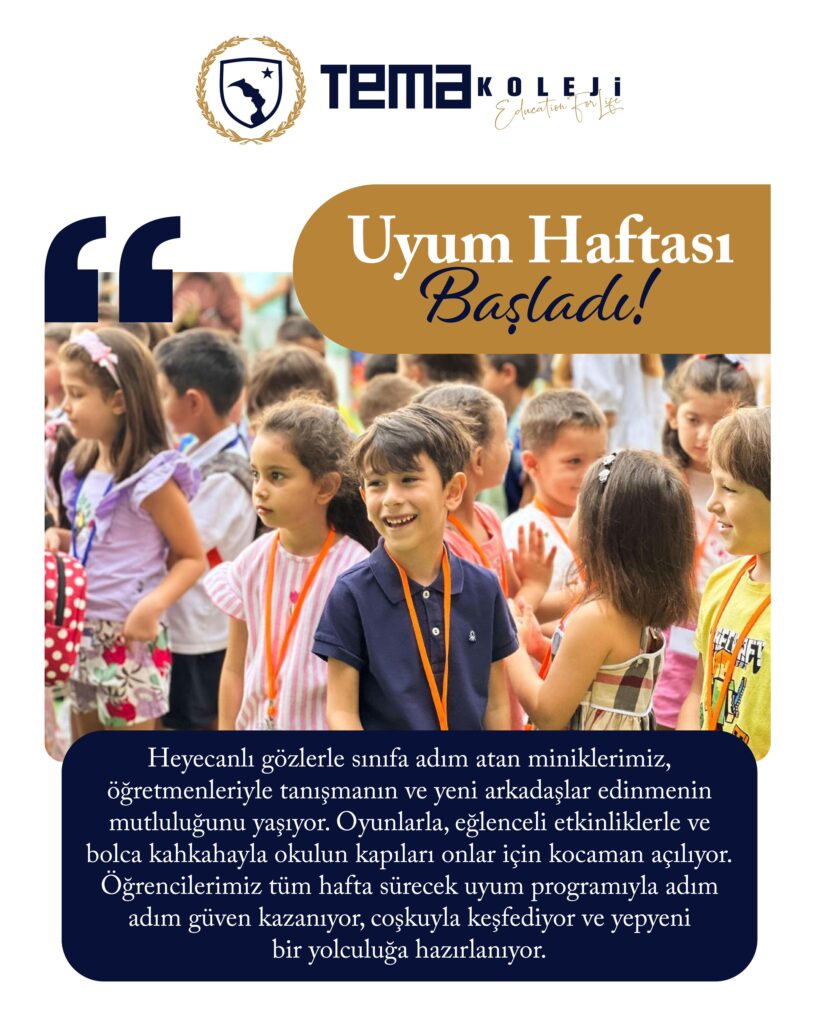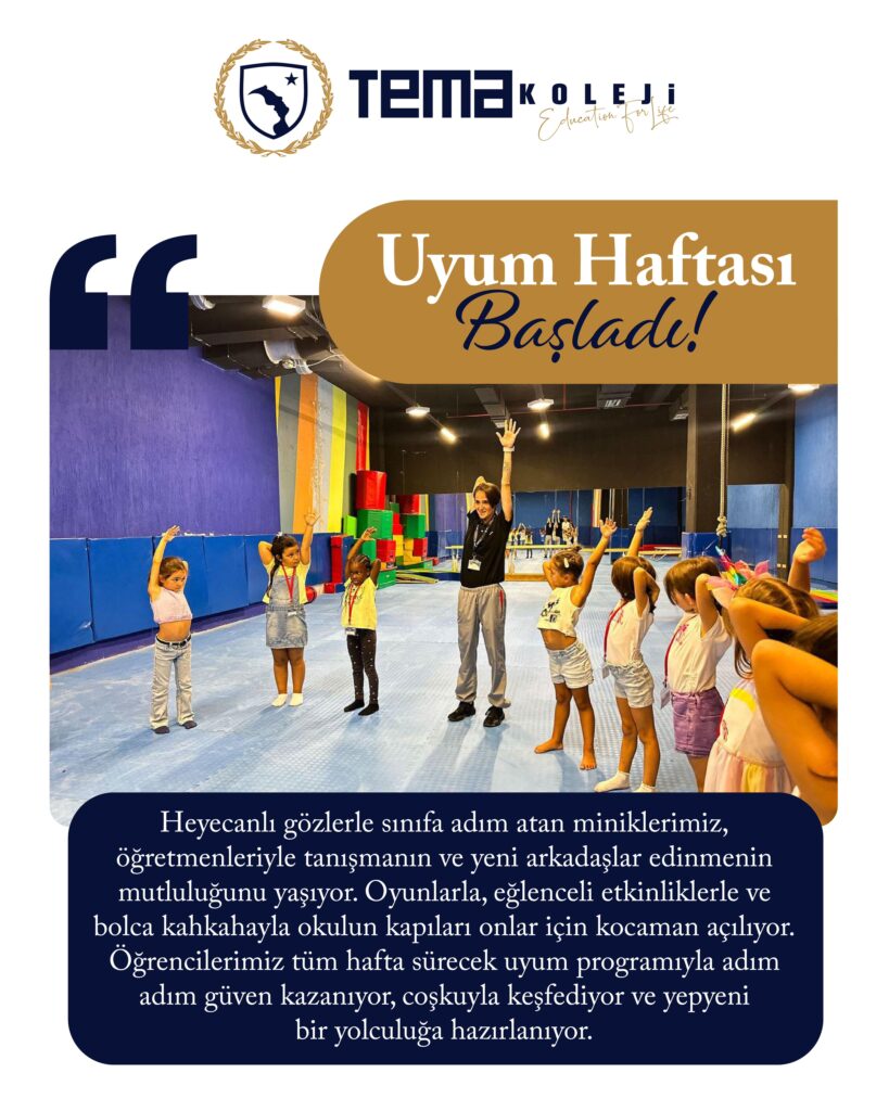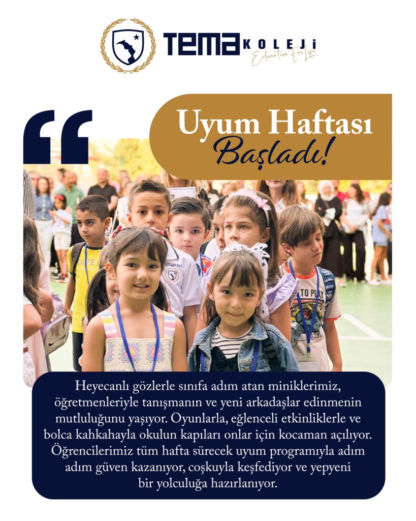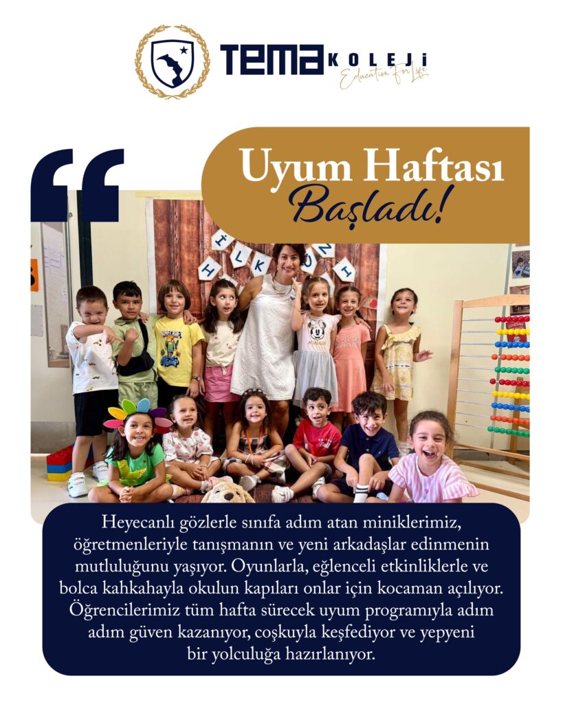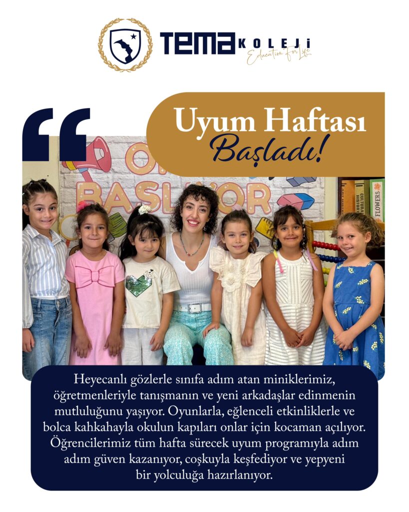 Heyecanlı gözlerle sınıfa adım atan miniklerimiz, öğretmenleriyle tanışmanın ve yeni arkadaşlar edinmenin mutluluğunu yaşıyor. Oyunlarla, eğlenceli etkinliklerle ve bolca kahkahayla okulun kapıları onlar için kocaman açılıyor. Öğrencilerimiz tüm hafta sürecek uyum programıyla adım adım güven kazanıyor, coşkuyla keşfediyor ve yepyeni bir yolculuğa hazırlanıyor.