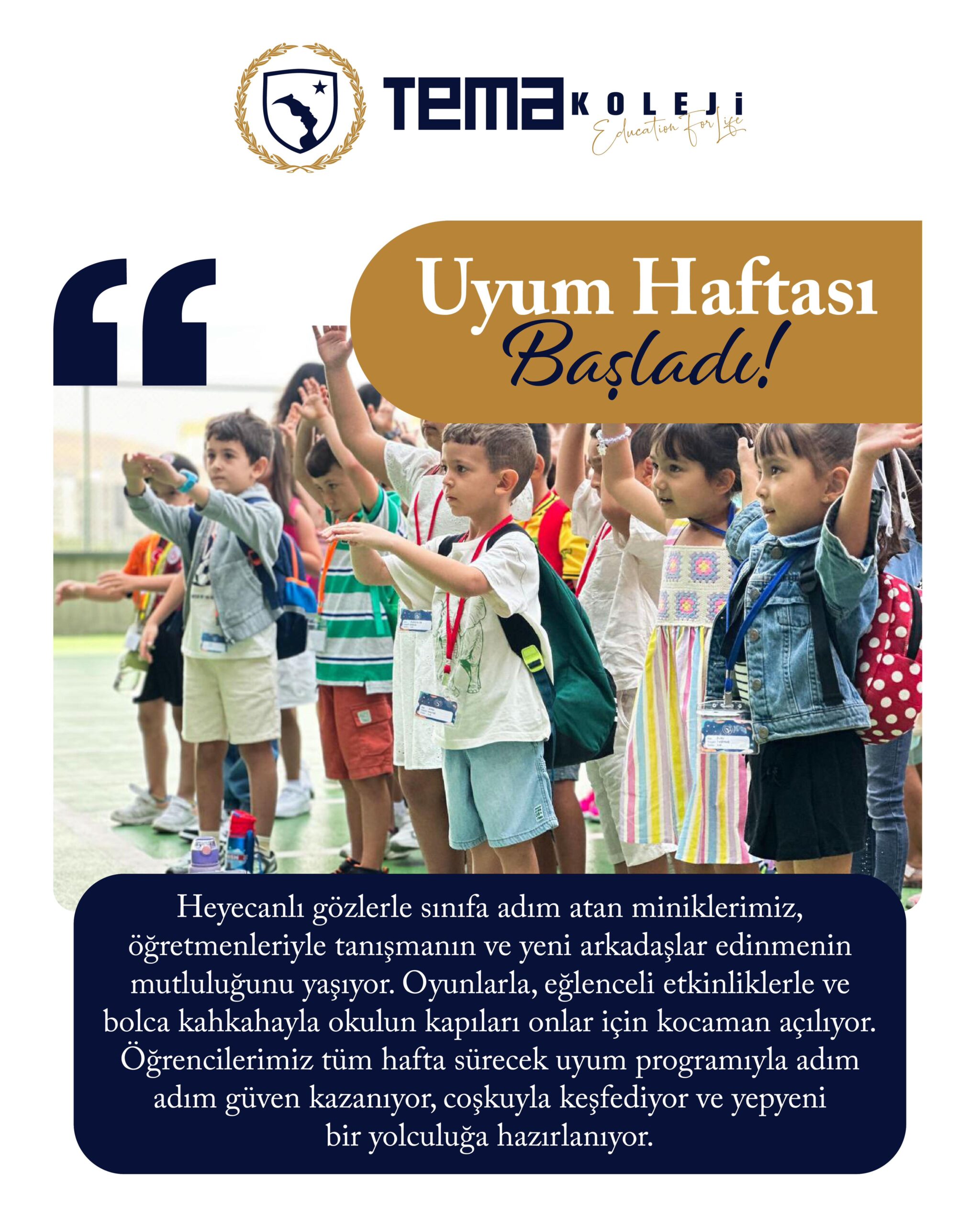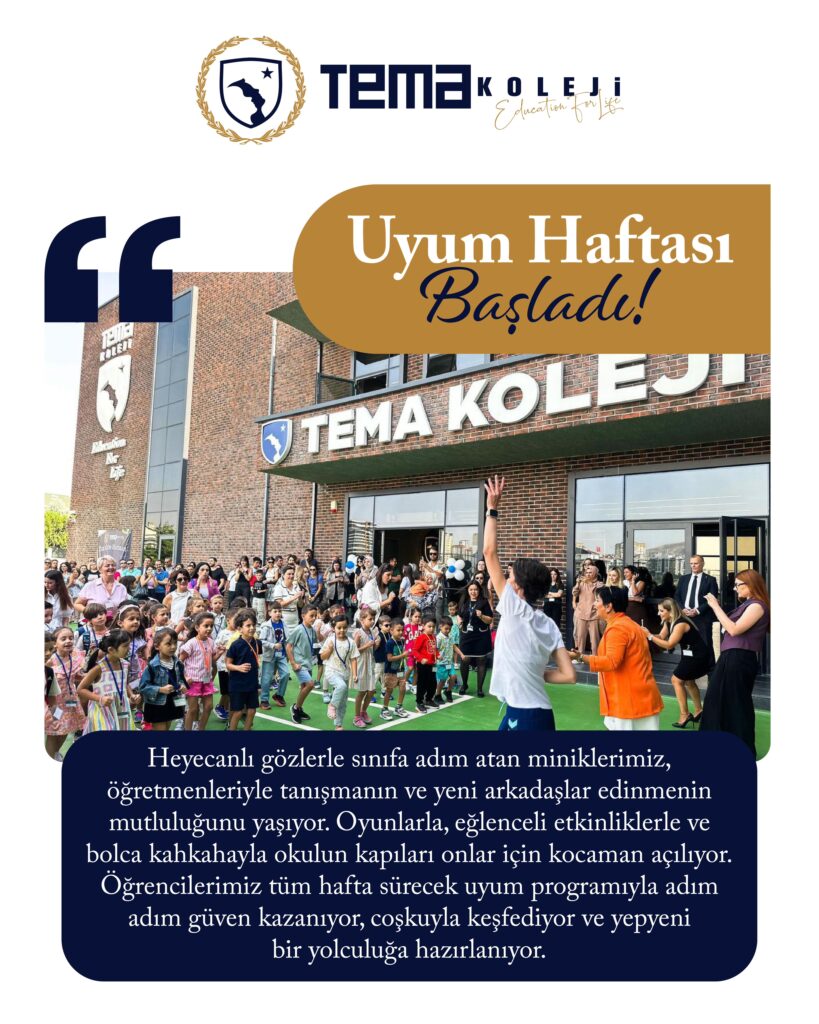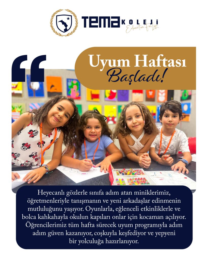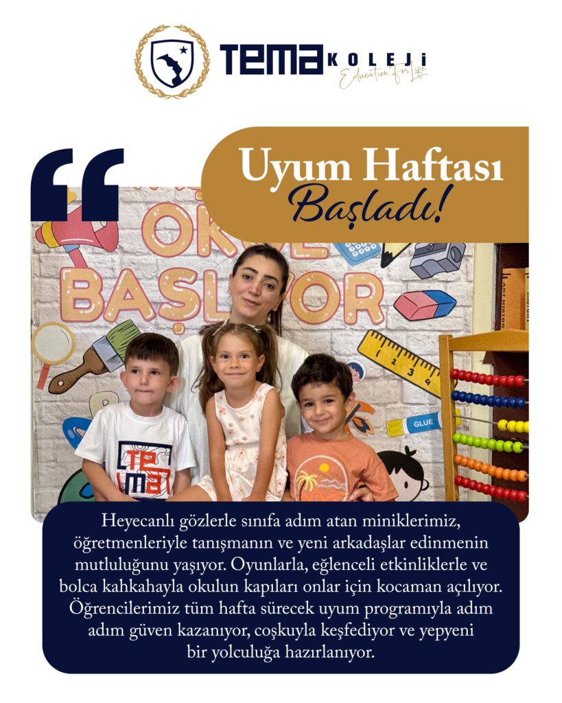 Heyecanlı gözlerle sınıfa adım atan miniklerimiz, öğretmenleriyle tanışmanın ve yeni arkadaşlar edinmenin mutluluğunu yaşıyor. Oyunlarla, eğlenceli etkinliklerle ve bolca kahkahayla okulun kapıları onlar için kocaman açılıyor. Öğrencilerimiz tüm hafta sürecek uyum programıyla adım adım güven kazanıyor, coşkuyla keşfediyor ve yepyeni bir yolculuğa hazırlanıyor.